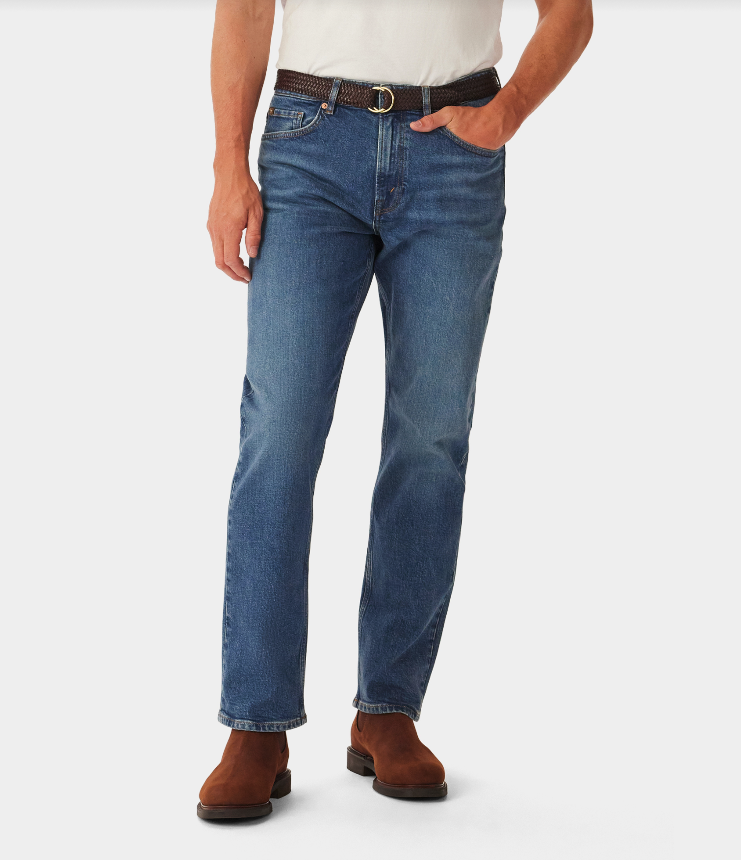 A versatile straight-leg style, designed to be dressed up or down. This classic jean is crafted from Australian Good Earth Cotton¨ stretch denim, with five pockets and signature branded hardware.